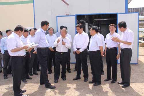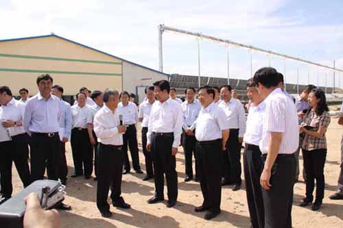 6月9日下午,新疆维吾尔自治区党委书记张春贤,自治区党委副书记、自治区主席努尔·白克力率领的新疆党政代表团在甘肃省委副书记、省长刘伟平等陪同下莅临我公司太阳能示范基地调研聚光太阳热能示范项目及关键装备研发情况。